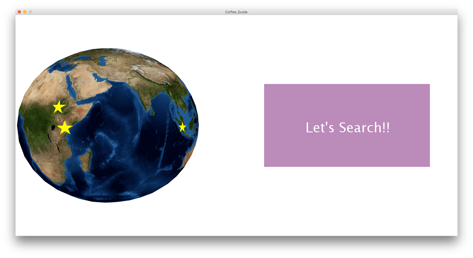 地球儀が回っているアニメーションの星マークをタッチすることでその土地のコーヒー情報を勉強することのできるアプリケーション。(編集中)